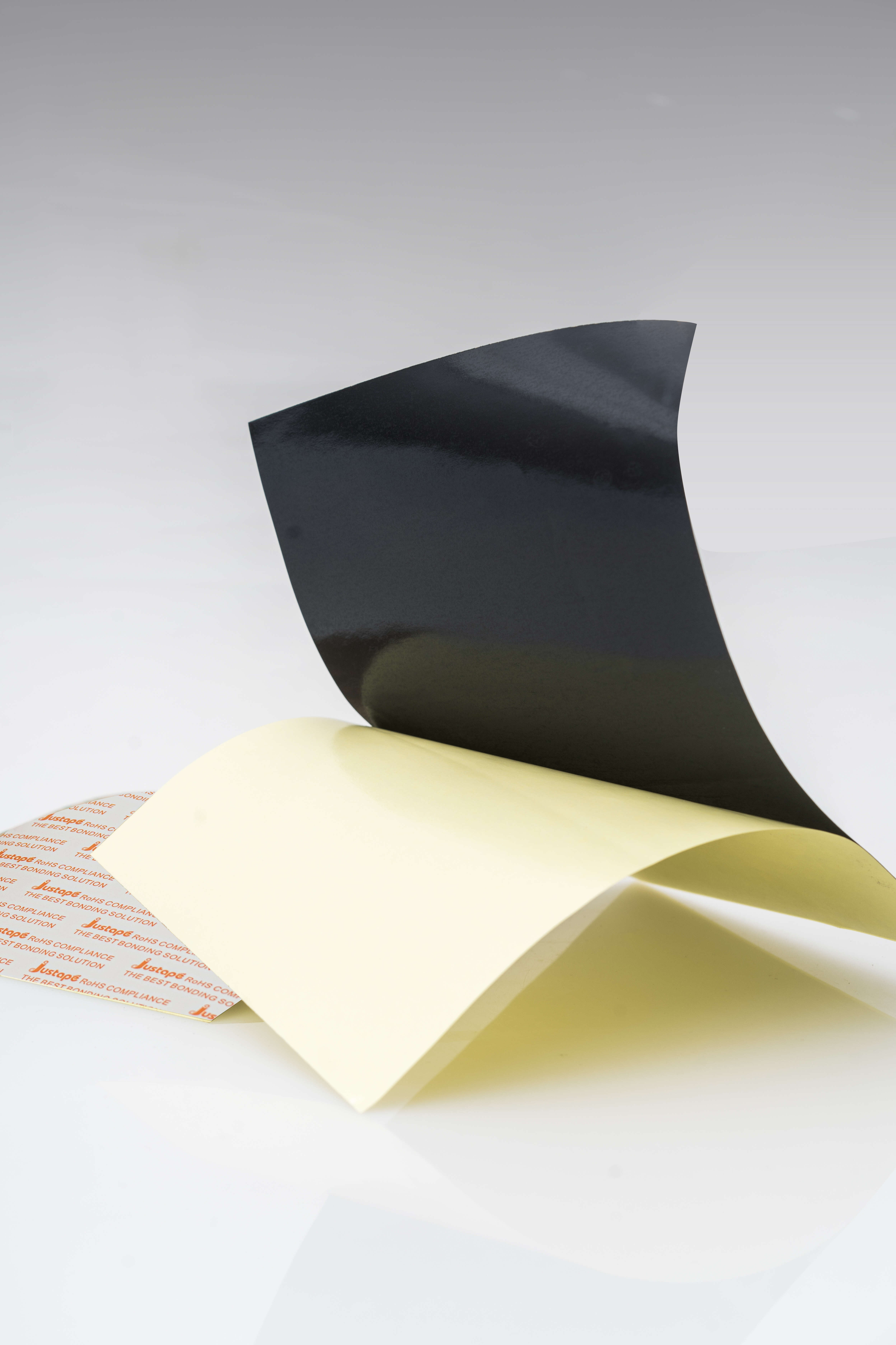 25um 黑PET基材,两面覆合黑色丙烯酸压敏胶,单面附PEK离型纸。